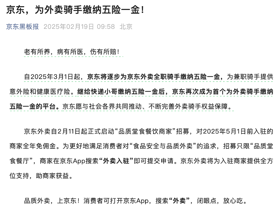 你的位置:365在线教育国家承认吗 > 新闻动态 >刚刚,京东宣布为外卖骑手缴纳五险一金